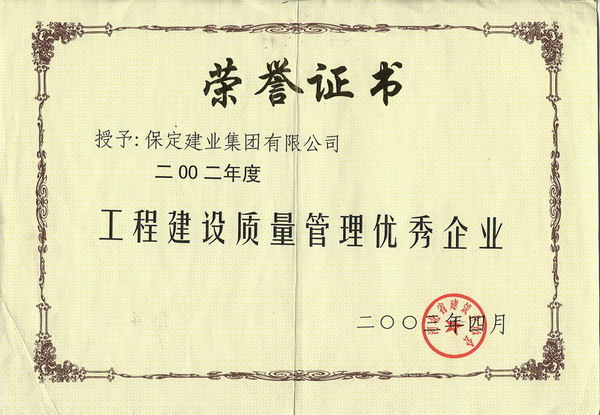 02年度省質量管理優(yōu)秀企業(yè)